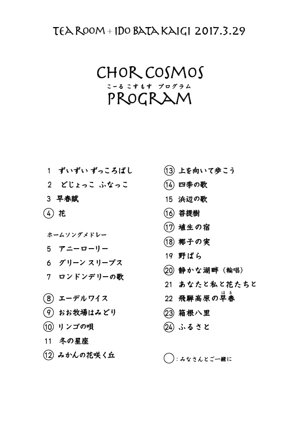 3月のティールームはコーラスグループ「こーるこすもす」と井戸端会議のコラボ企画!